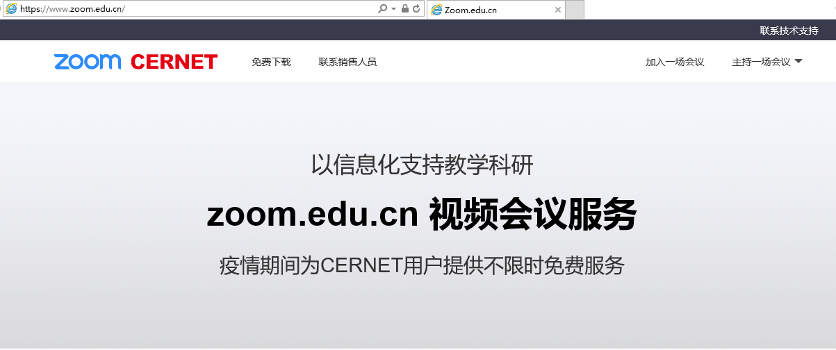为满足全国高校疫情防控期间对高品质大规模视频会议和“停课不停教,停课不停学”的需求,中国教育和科研计算机网(CERNET)、赛尔网络有限公司与国际著名视频会议服务商ZOOM合作推出不限时长、免费的zoom.edu.cn视频会议服务。